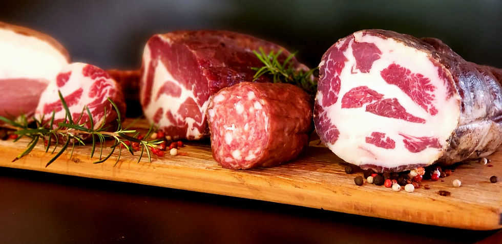 A boa notícia é que existem técnicas milenares praticadas em nossa charcutaria artesanal, onde a cura, o processamento e a maturação das carnes são feitas de forma mais natural e saudável, pois levam 3 ingredientes fundamentais dessa arte: Amor, Tempo e Paciência.